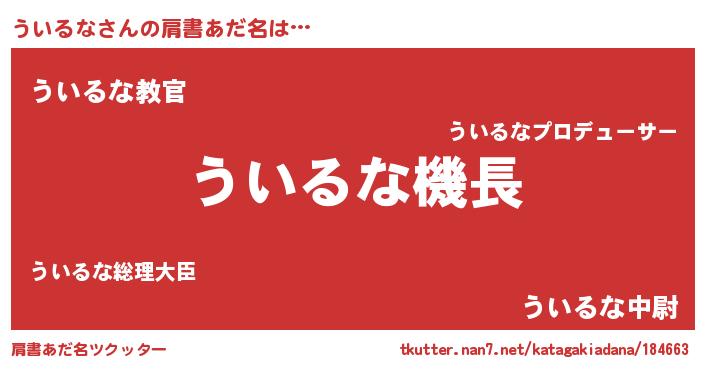 | 男性向けラノベタイトル風あだ名 | 『うちのういるなが世界を掌握している!』 |