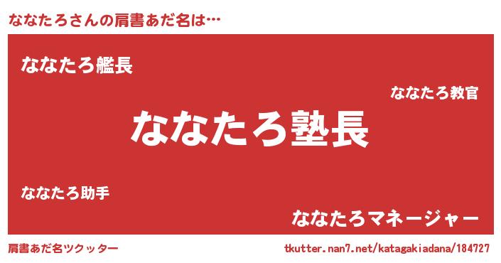| 意味不明あだ名 | 『とにかく怪しいななたろ』 |