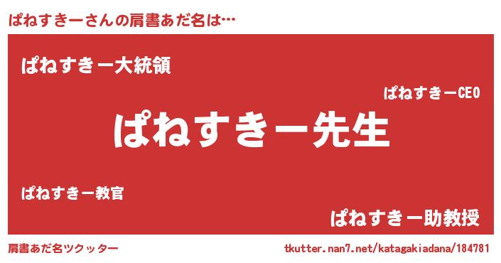| 男性向けラノベタイトル風あだ名 | 『ぱねすきーという概念が存在しない退屈な世界 』 |