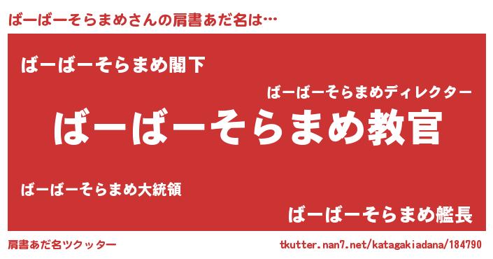 | 女子向けラノベタイトル風あだ名 | 『乙女ゲームの破滅フラグしかない悪役ばーばーそらまめに転生してしまった…』 |