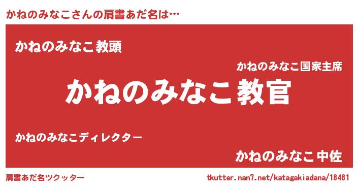 | ヒーロー風カッコイイあだ名 | 『仮面カネダー』『ネオカネノミナコ』 |