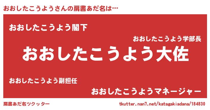 | 男性向けラノベタイトル風あだ名 | 『オオシタコウヨウスレイヤー』 |