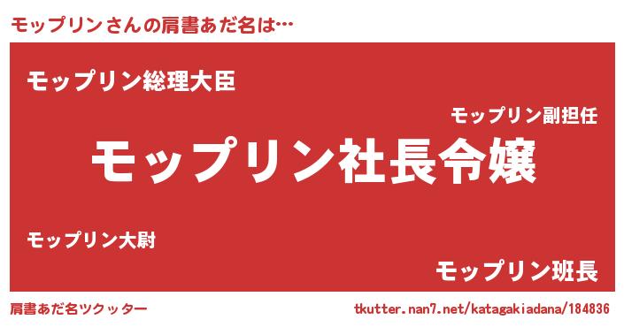 | 男性向けラノベタイトル風あだ名 | 『モップリンの憂鬱』 |