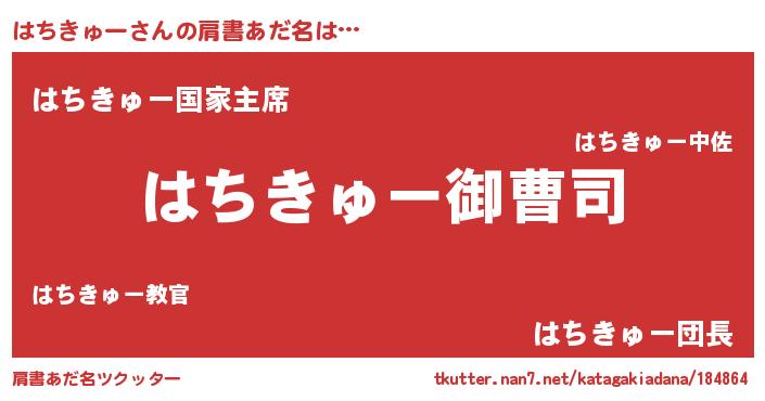| ファンタジー風あだ名 | 『ハチフェル』『エターナルハチキューー』 |