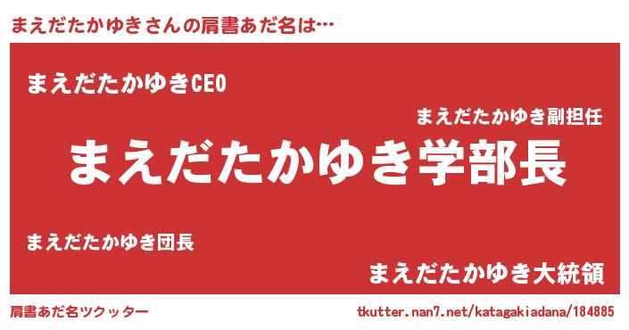 | 男性向けラノベタイトル風あだ名 | 『ノーゲーム・ノーマエダタカユキ』 |