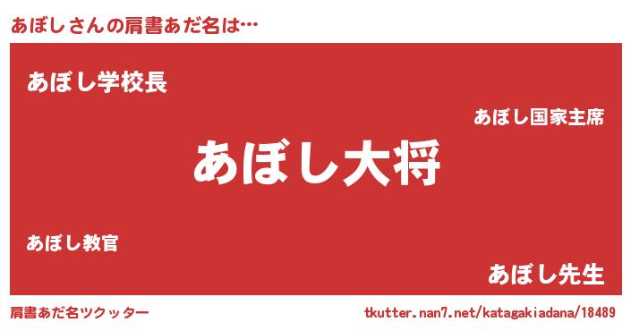 | 男性向けラノベタイトル風あだ名 | 『アボシスレイヤー』『魔弾の王とあぼし』 |