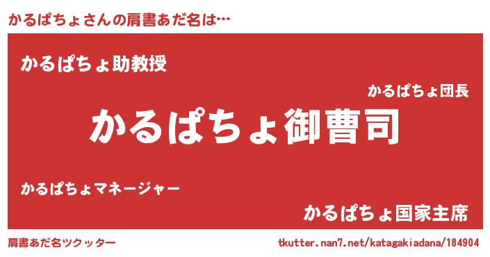 | 男性向けラノベタイトル風あだ名 | 『かるぱちょの憂鬱』 |