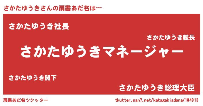 | 男性向けラノベタイトル風あだ名 | 『はたらくさかたゆうきさま!』 |