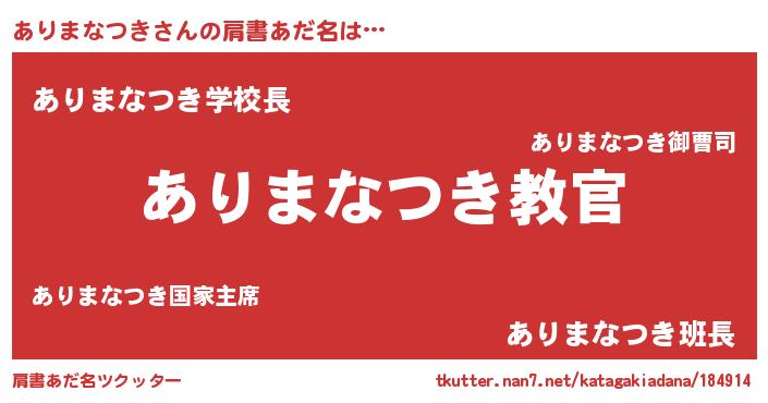 | 男性向けラノベタイトル風あだ名 | 『魔弾の王とありまなつき』 |