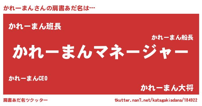 | 意味不明あだ名 | 『とにかく怪しいかれーまん』 |