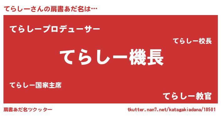 | 意味不明あだ名 | 『住所不定無職てらしー(81歳)』 |