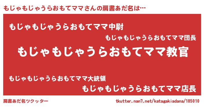 | 女子向けラノベタイトル風あだ名 | 『もじゃもじゃうらおもてママが死なない童話 林檎のもじゃもじゃうらおもてママの診療簿』 |