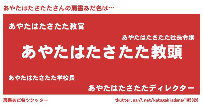 | ヒーロー風カッコイイあだ名 | 『ネオアヤタハタサタタ』『仮面アヤダー』 |
