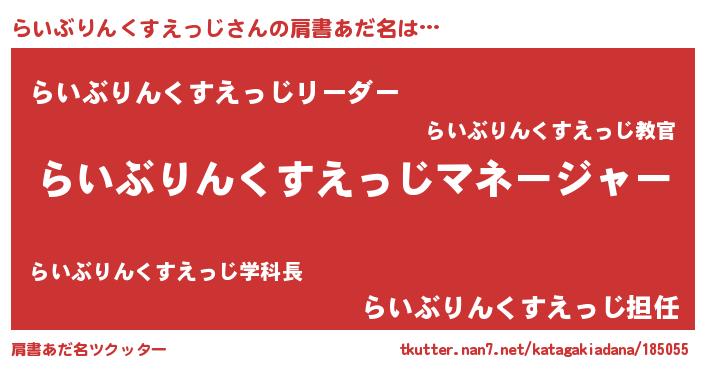 | ヘコむあだ名 | 『らいを』『らいぶりんくすえっじ(遠い目)』 |