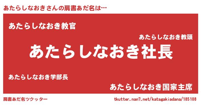 | 男性向けラノベタイトル風あだ名 | 『アタラシナオキアートオンライン』 |