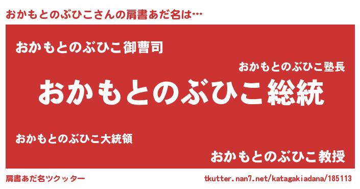 | 男性向けラノベタイトル風あだ名 | 『Re:おかもとのぶひこから始める異世界生活』 |