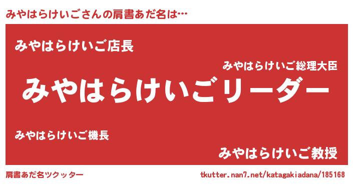 | ヒーロー風カッコイイあだ名 | 『銀牙騎士ミヤ』『ネオミヤハラケイゴ』 |
