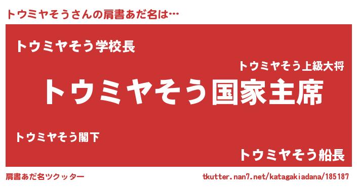 | 欧米人風あだ名 | 『トウミヤそうクリステル』 |