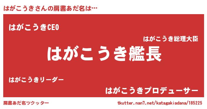| 欧米人風あだ名 | 『はがこうき・ステッグマイヤー』 |