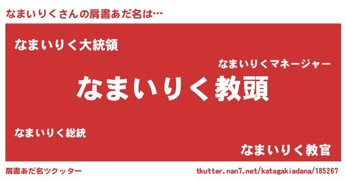 | 意味不明あだ名 | 『永久保存なまいりく』『自称なまいりく』 |