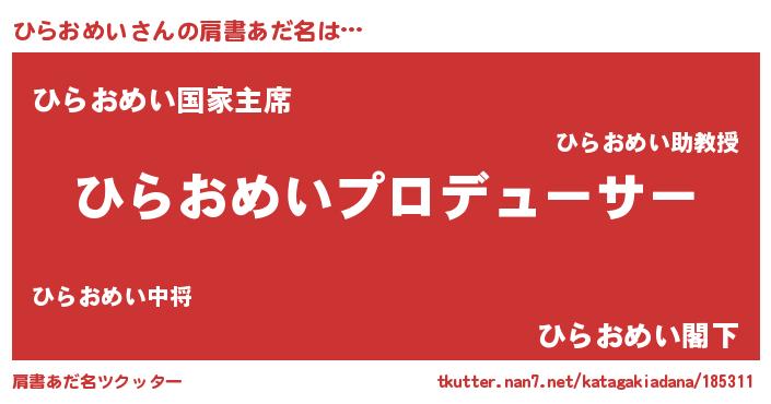 | 男性向けラノベタイトル風あだ名 | 『はたらくひらおめいさま!』 |