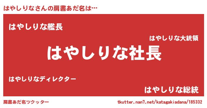 | 意味不明あだ名 | 『ペロリンはやしりな』『自称はやしりな』 |