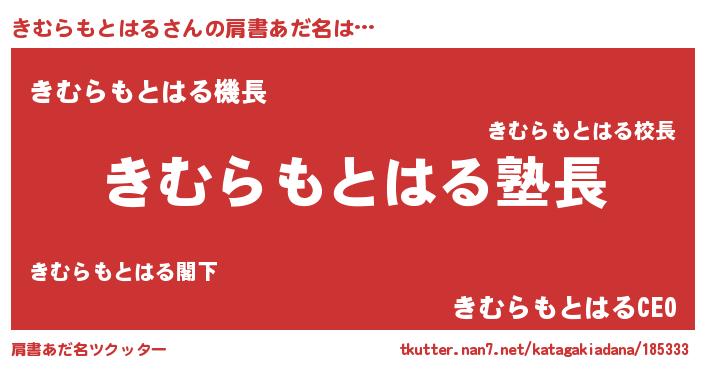 | 男性向けラノベタイトル風あだ名 | 『ダンジョンにきむらもとはるを求めるのは間違っているだろうか』 |
