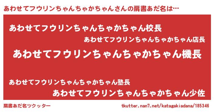 | 胡散臭い通販商品みたいなあだ名 | 『絶対に幸福をもたらす水素水…その名も「あわせてフウリンちゃんちゃかちゃん」』 |