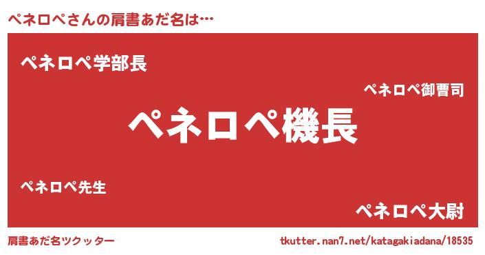| ヒーロー風カッコイイあだ名 | 『正義の使者ペネロペ』『ネオペネロペ』 |
