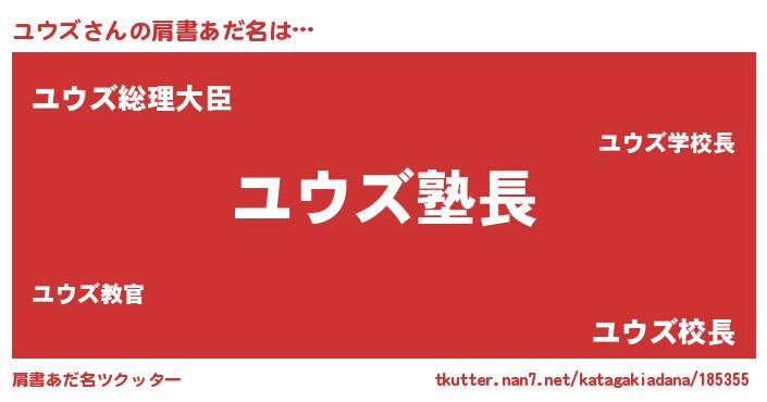 | 意味不明あだ名 | 『とにかく怪しいユウズ』 |