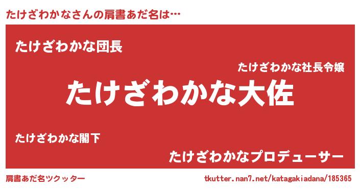 | 男性向けラノベタイトル風あだ名 | 『タケザワカナスレイヤー』 |