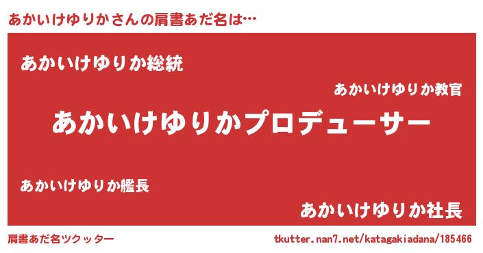 | 男性向けラノベタイトル風あだ名 | 『あかいけゆりかに滅ぼされるだけの簡単なお仕事です』 |
