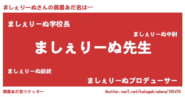 | 男性向けラノベタイトル風あだ名 | 『ましぇりーぬという概念が存在しない退屈な世界 』 |