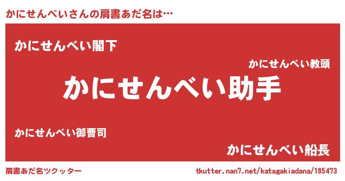 | 男性向けラノベタイトル風あだ名 | 『ノーゲーム・ノーカニセンベイ』 |