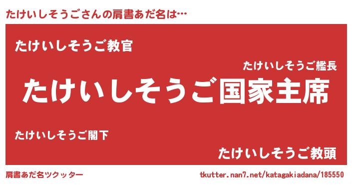 | 男性向けラノベタイトル風あだ名 | 『やはりたけいしそうごの青春ラブコメはまちがっている 』 |