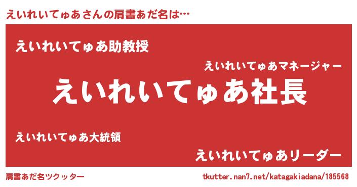| 欧米人風あだ名 | 『マイケルえいれいてゅあ』 |