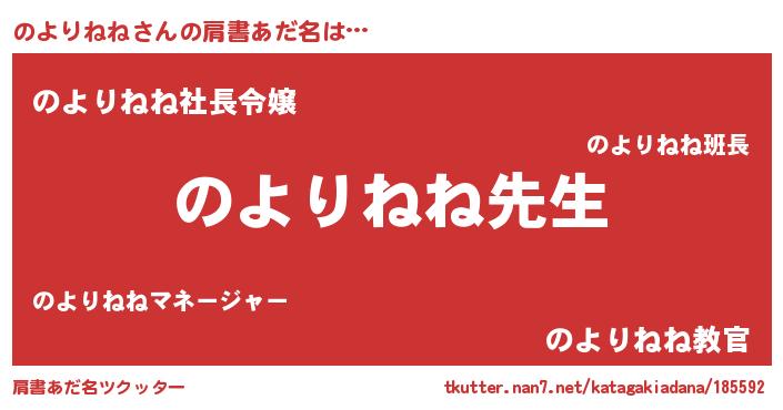 | ヘコむあだ名 | 『のよりねね(小並感)』『のよもー』 |