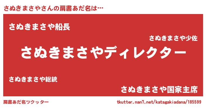| 男性向けラノベタイトル風あだ名 | 『はたらくさぬきまさやさま!』 |