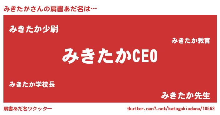 | 女子向けラノベタイトル風あだ名 | 『みきたか姫と円卓の騎士』 |