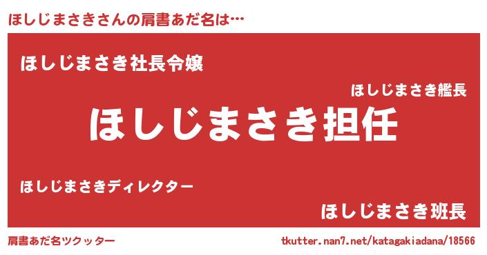 | ヘコむあだ名 | 『ほしじまさき(苦笑)』『ほしもー』 |