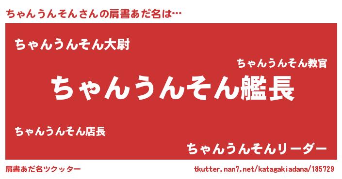 | 男性向けラノベタイトル風あだ名 | 『うちのちゃんうんそんが世界を掌握している!』 |