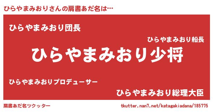 | 男性向けラノベタイトル風あだ名 | 『ひらやまみおり~年齢イコール彼女いない歴の魔法使い~』 |