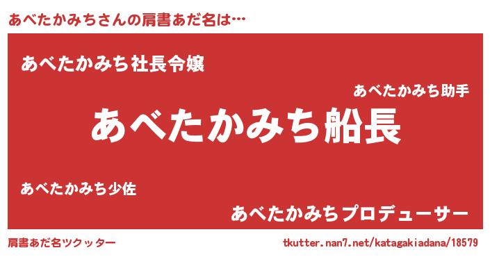 | 男性向けラノベタイトル風あだ名 | 『緋弾のアベタカミチ』 |