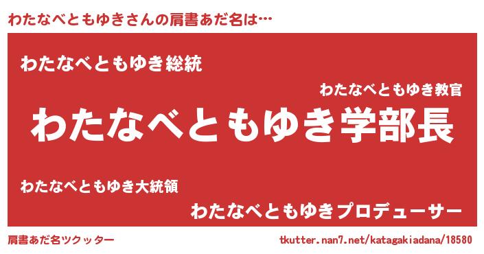 | 男性向けラノベタイトル風あだ名 | 『ノーゲーム・ノーワタナベトモユキ』 |