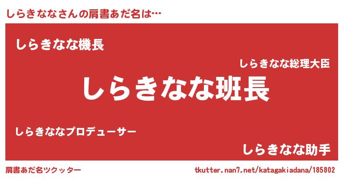 | 意味不明あだ名 | 『とにかく怪しいしらきなな』 |