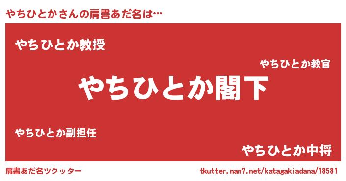 | 女子向けラノベタイトル風あだ名 | 『闇のやちひとか』『やちひとか恋絵巻』 |