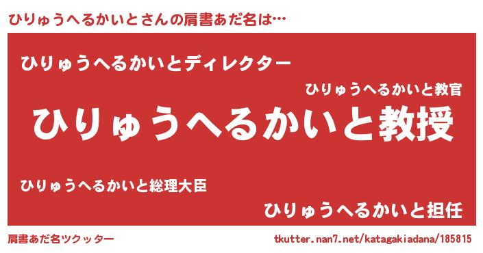 | 伝説のあだ名 | 『救世主となる技術者ひりゅうへるかいと』 |