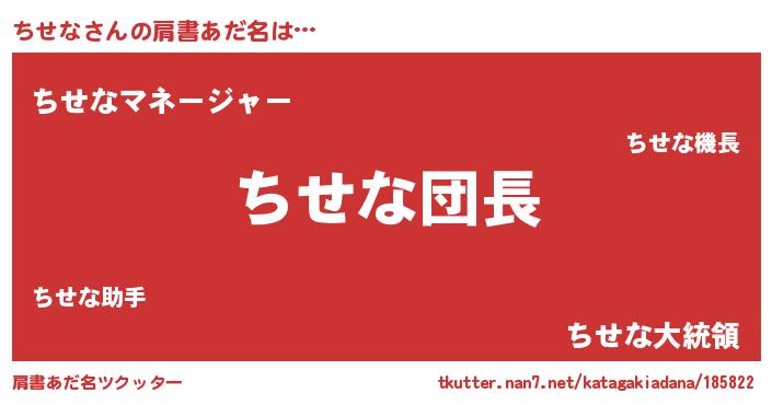 | 意味不明あだ名 | 『とにかく怪しいちせな』『自称ちせな』 |
