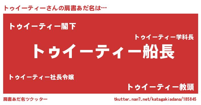 | ヘコむあだ名 | 『トゥイーティー(小並感)』『トゥにー』 |