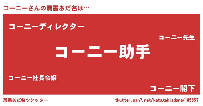 | 欧米人風あだ名 | 『ダニエルコーニー』『マイケルコーニー』 |